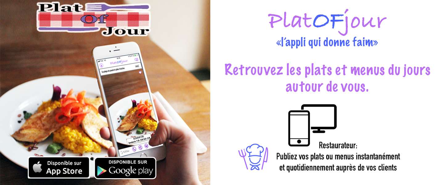 Platofjour est une application mobile qui permet aux restaurateurs de publier leurs plats et menus du jours instantanément et de suivre leurs statistiques en temps réel.