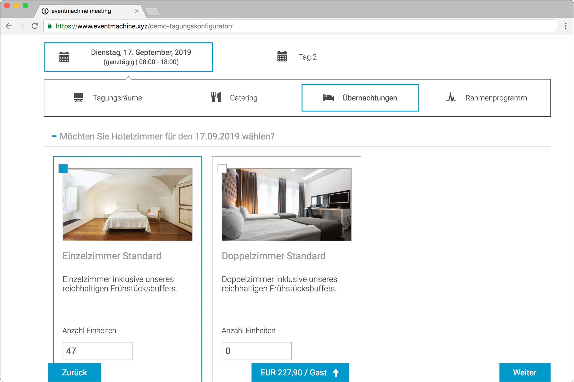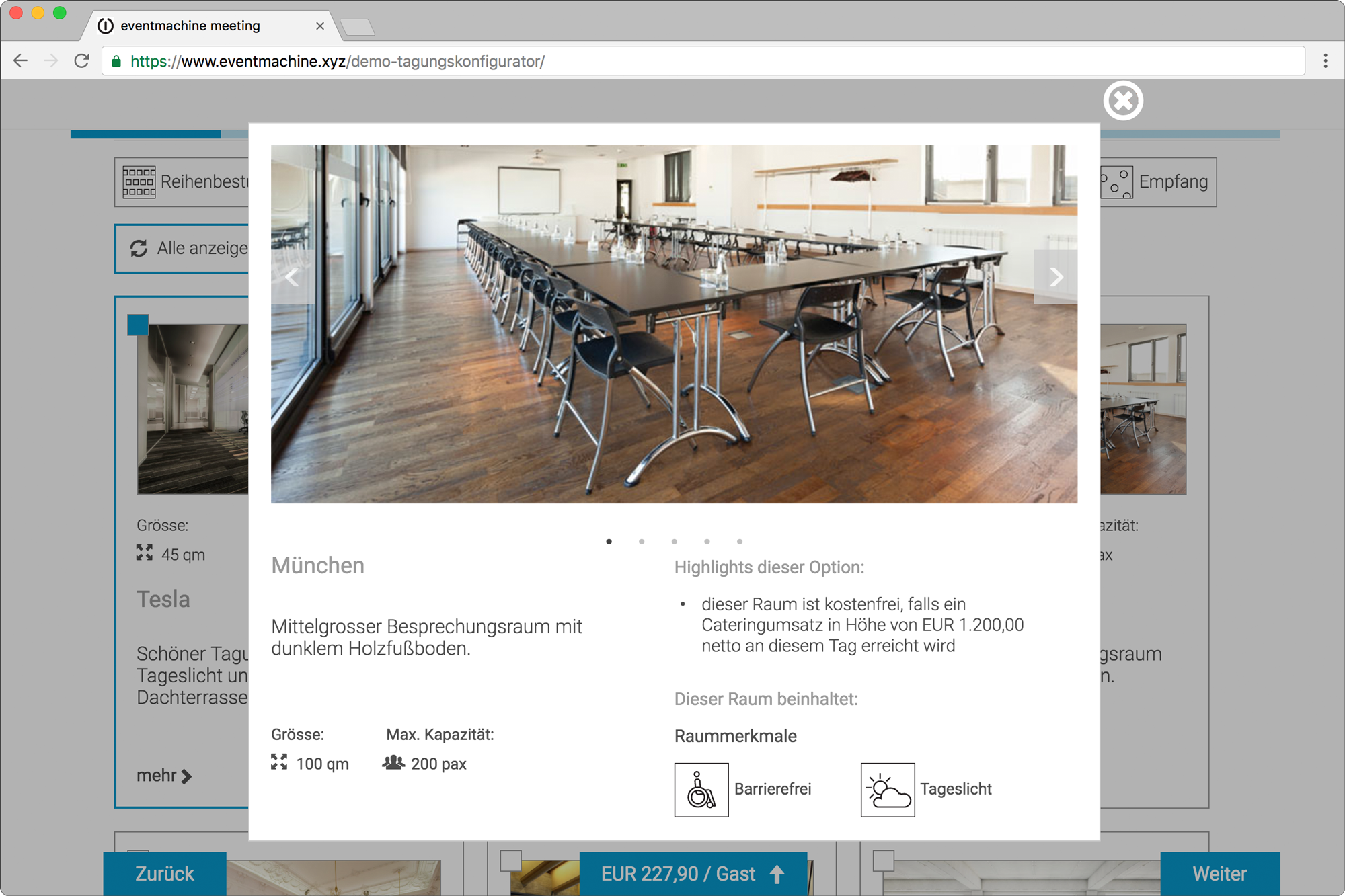 EVENTMACHINE is the first turnkey event planning and quoting platform. Error-free meetings and events are planned and calculated instantly. The MICE tool or hotels, venues and all providers of meetings, seminars and events.