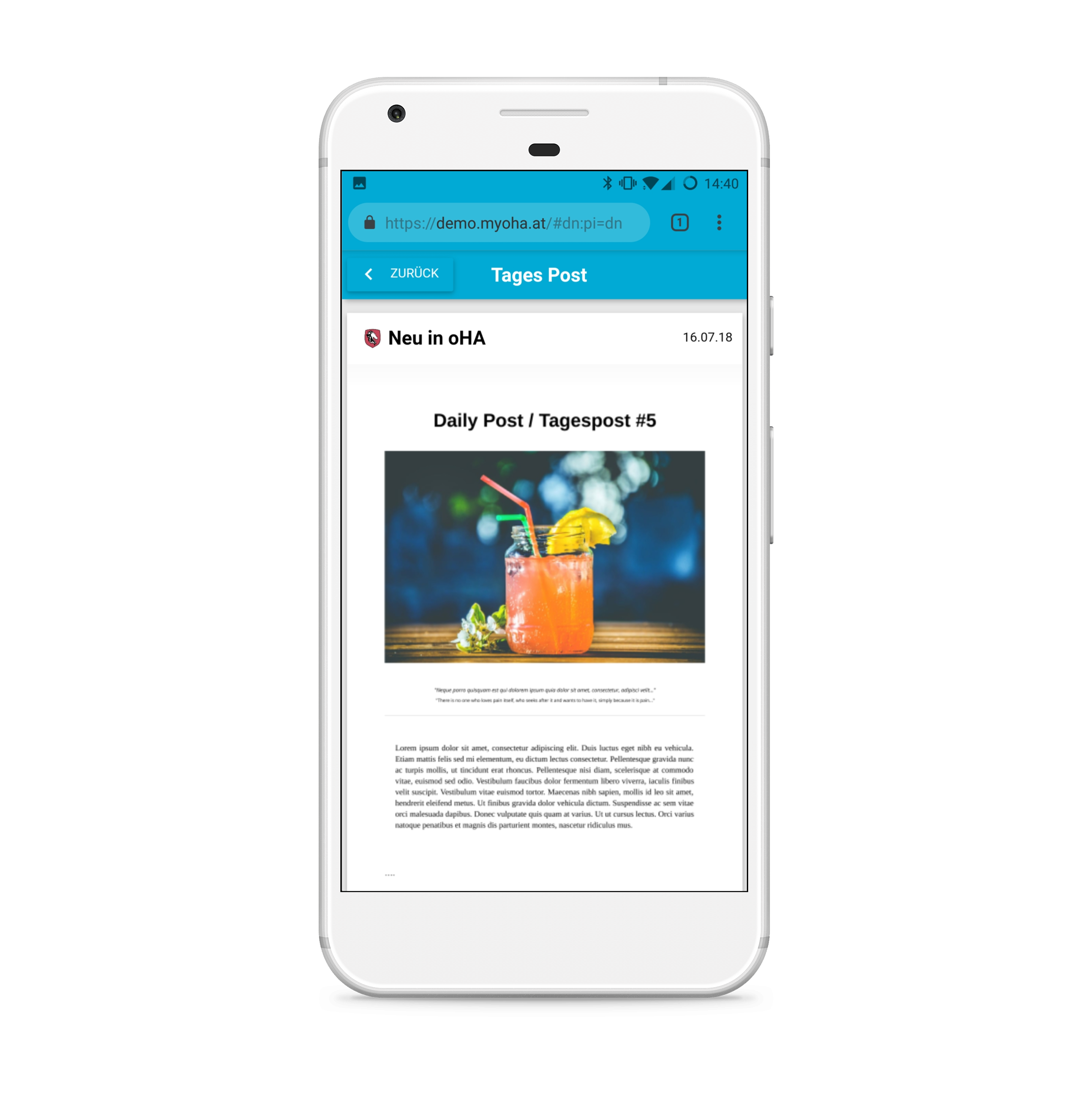 oHA is a tourism e-service and information system which is particularly efficient in a WiFi where every guest gets the service automatically on its own mobile device as progressive web application (PWA). oHA can be connected with our optional hardware, the oHA Box and is accessible in the WWW.